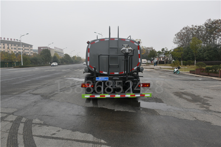 該車主要用于城鄉園林綠化,路面噴灑,除塵和降溫;主要裝置為水罐及噴灑裝置;隨底盤選裝駕駛室;罐體有效容積:7.58立方米;罐體外形尺寸(長×長軸×短軸)(mm):4200×2000×1310;ABS型號/廠家:ABS型號及生產廠家為:3631010-C2000/東科克諾爾商用車制動系統(十堰)有限公司,J ABS/焦作博瑞克控制技術有限公司;側、后防護材料均為:Q235碳鋼,連接方式均為:螺栓連接,后部防護截面尺寸(mm):120×50,后部防護離地高度(mm):450.選裝噴灑裝置。