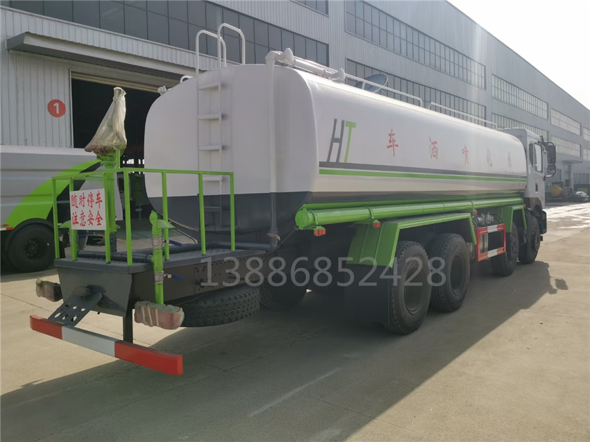 東風前四后八保溫送水車_保溫運水車_熱水車哪里買_配置:新款工藝罐體,全車螺栓鉚接,標準件生產,罐體材質采用4mm厚度優質武鋼碳鋼材料,罐體一次性卷壓成型,埋弧焊焊接,罐內隔板具有防波作用,以減輕汽車行駛時罐體液體沖擊,罐體及整車外形尺寸按照公告。帶大功率灑水泵,泵可自吸自排,整車前沖、后灑、側噴、帶65消防接口,后平臺帶綠化灑水炮,灑水炮可旋轉,可連續調成直沖狀、大雨、小雨、毛毛雨;前封頭帶水位計,后平臺主管路帶1寸澆花接口,后爬梯。平臺后部帶小安全告知牌:“隨時停車,注意安全”,帶兩根水管及陰陽端。罐體兩側噴“灑、綠化灑”字樣,貼反光標示。垂直吸程:8米,灑水寬度:20米,灑水炮射程:28-35米。