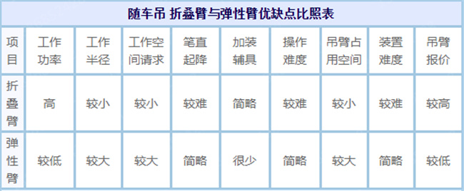 隨車吊 折疊臂與彈性直臂優(yōu)缺點比照表工作半徑