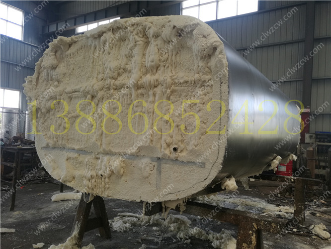 保溫層在制作上主要是在罐體外部先焊接一個支撐骨架,其厚度一般為100mm,然后再用保溫材料把骨架填充滿。在保溫材料的選擇上我們一般考慮導熱系數小,耐高溫,質量輕,吸聲性能好,絕緣性和化學穩(wěn)定性好的硬質聚氨酷泡沫塑料或巖棉。然后需要對填充的保溫材料進行修正,最后在骨架上撞上蒙板,蒙板一般使用厚度為lmm的冷軋板。