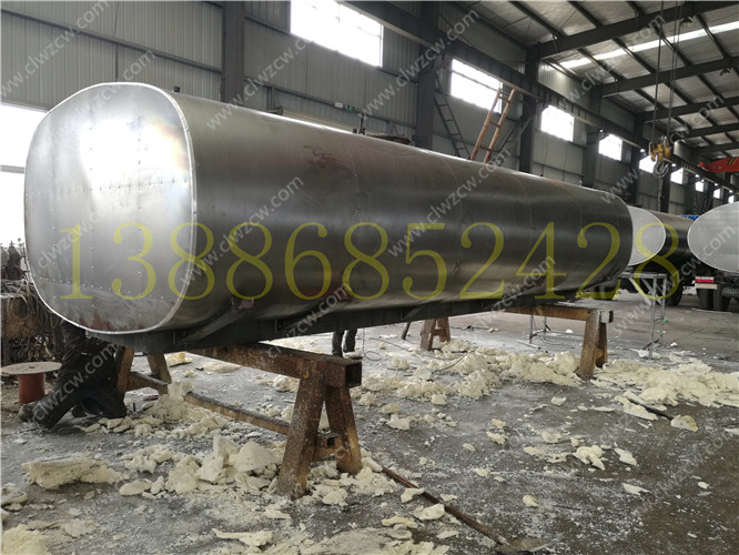 保溫熱水運輸車相比一般的灑水車在結構上多了一個保溫層,保溫層在制作上主要是在罐體外部先焊接一個支撐骨架,其厚度一般為100mm,然后再用保溫材料把骨架填充滿。在保溫材料的選擇上我們一般考慮導熱系數小,耐高溫,質量輕,吸聲性能好,絕緣性和化學穩(wěn)定性好的硬質聚氨酷泡沫塑料或巖棉。然后需要對填充的保溫材料進行修正,最后在骨架上撞上蒙板,蒙板一般使用厚度為lmm的鋁板,碳鋼板或者不銹鋼。