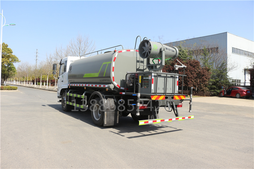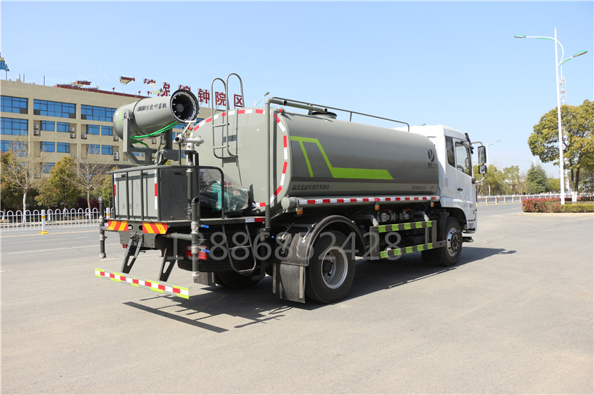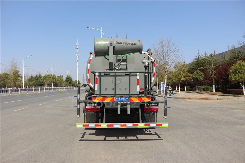 國六東風12方霧炮車,福瑞卡12方噴霧車,云內170 12方抑塵車,F9福瑞卡灑水車,該車用途為抑塵降霾.主要裝置為罐體及噴霧裝置;隨底盤選裝駕駛室;罐體有效容積:11.3立方米;罐體外形尺寸(×長軸×短軸)(mm):4000×2300×1540;側、后防護材料均為:Q235碳鋼,連接方式均為:螺栓連接,后部防護截面尺寸(mm):120×50,后部防護離地高度(mm):450;ABS型號:ABS/ASR-24V-4S/4M,廠家:襄陽東風隆誠機械有限責任公司.采用3950軸距,選裝噴霧裝置樣式.選裝高位花灑裝置,選裝箭頭燈裝置,選裝尾部自流口裝置,隨底盤選裝左右油箱位置,選裝車輛前部鴨嘴裝置,選裝罐體頂部方形罐口及罐口位置,選裝自動球閥位置.