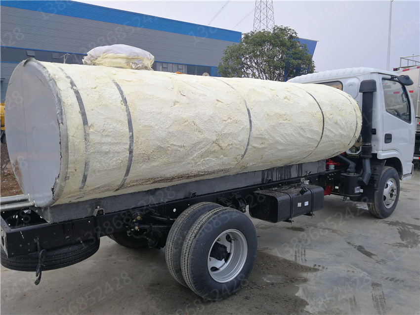 保溫熱水車與普通灑水車的區(qū)別就是在水罐外面加了一道保溫層。保溫層的制作是在水罐外面焊接5公分的支撐骨架,然后用保溫材料填充,再在保溫層外面外包一層碳鋼板或者不銹鋼板焊接制作