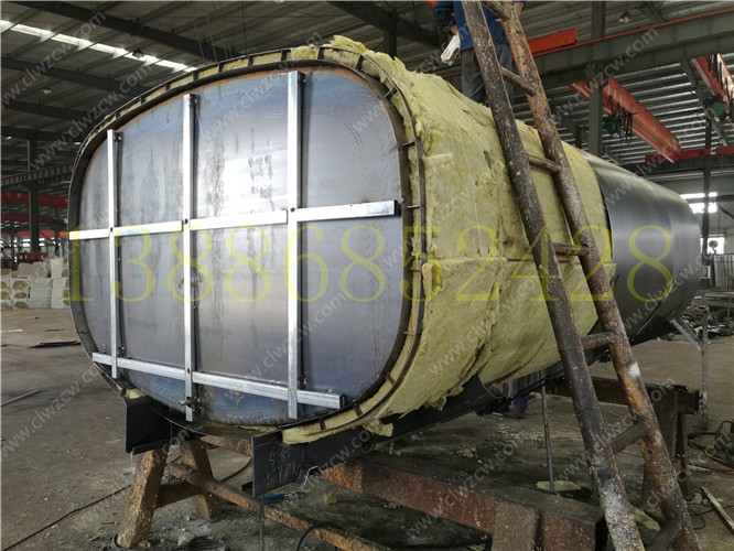 3. 保層溫的制作是在水罐外部另外焊接10mm厚的支撐骨架,然后用保溫材料將骨架內部填充滿,最后在骨架外蒙上一層外皮。 保溫層外表鐵皮采用8mm厚高強度耐磨板,可選擇使用不銹鋼分鏡面8K或磨砂板