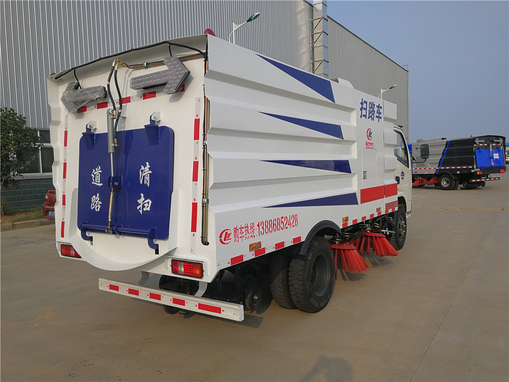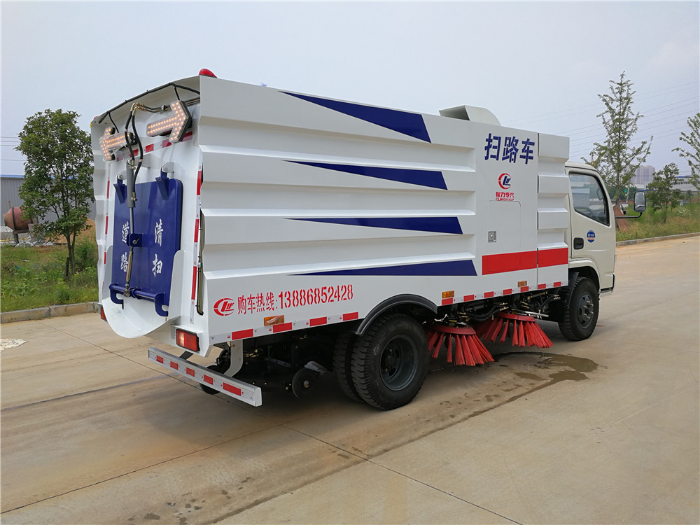 該掃路車采用東風多利卡二類底盤改裝,加裝副發(fā)動機、風機、清水箱、垃圾箱、左右立掃、掃盤降塵系統(tǒng),液壓系統(tǒng)、專用裝置電控系統(tǒng)和副車架等改裝而成。