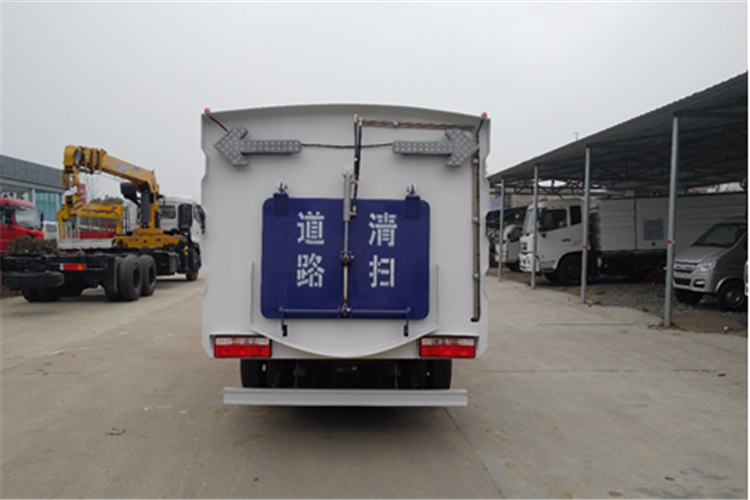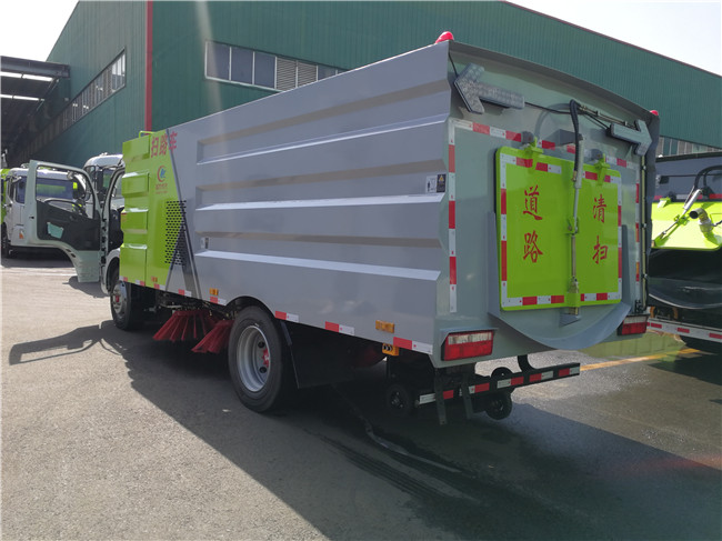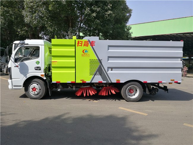 該掃路車采用東風(fēng)大多利卡二類底盤(pán)改裝,加裝副發(fā)動(dòng)機(jī)、風(fēng)機(jī)、清水箱、垃圾箱、左右立掃、掃盤(pán)降塵系統(tǒng),液壓系統(tǒng)、專用裝置電控系統(tǒng)和副車架等改裝而成。