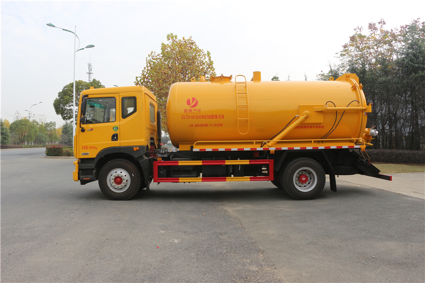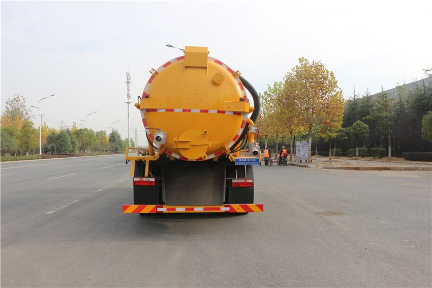 1. 罐體采用的是圓形罐體,結構更緊密,可以耐更高壓力提供更大的吸力, 吸程遠,尾部排放口以液壓油缸伸舉方式設計,可以更全面的排出所吸收的雜質(zhì)。